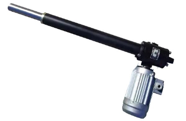 | 電機(jī)與推桿垂直,主體尾部銷孔固定,蝸輪鍋桿減速,驅(qū)動(dòng)電機(jī)為直流永磁電機(jī),三相異步電機(jī)。 |